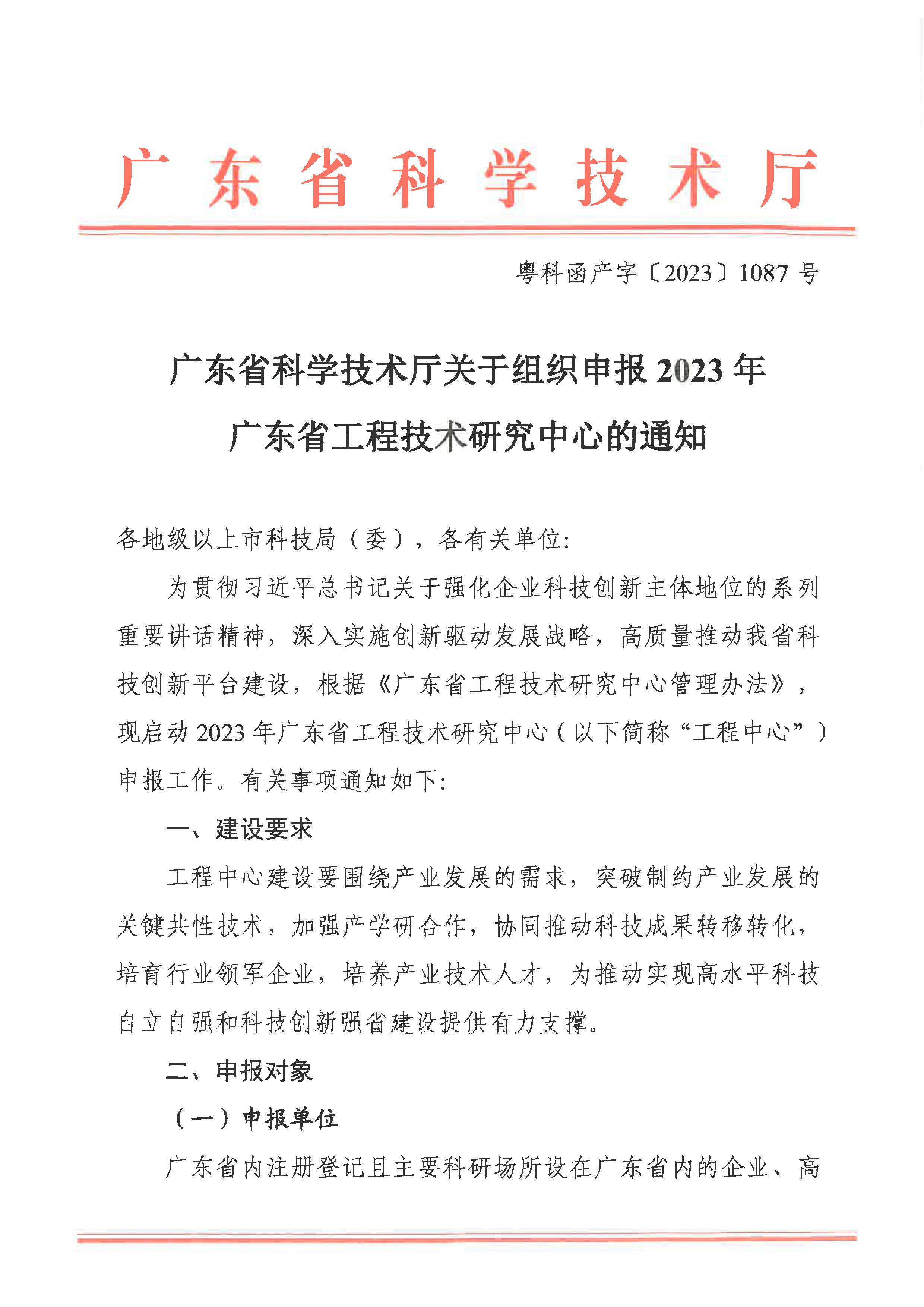 广东省科学技术厅关于组织申报2023年广东省工程技术研究中心的通知